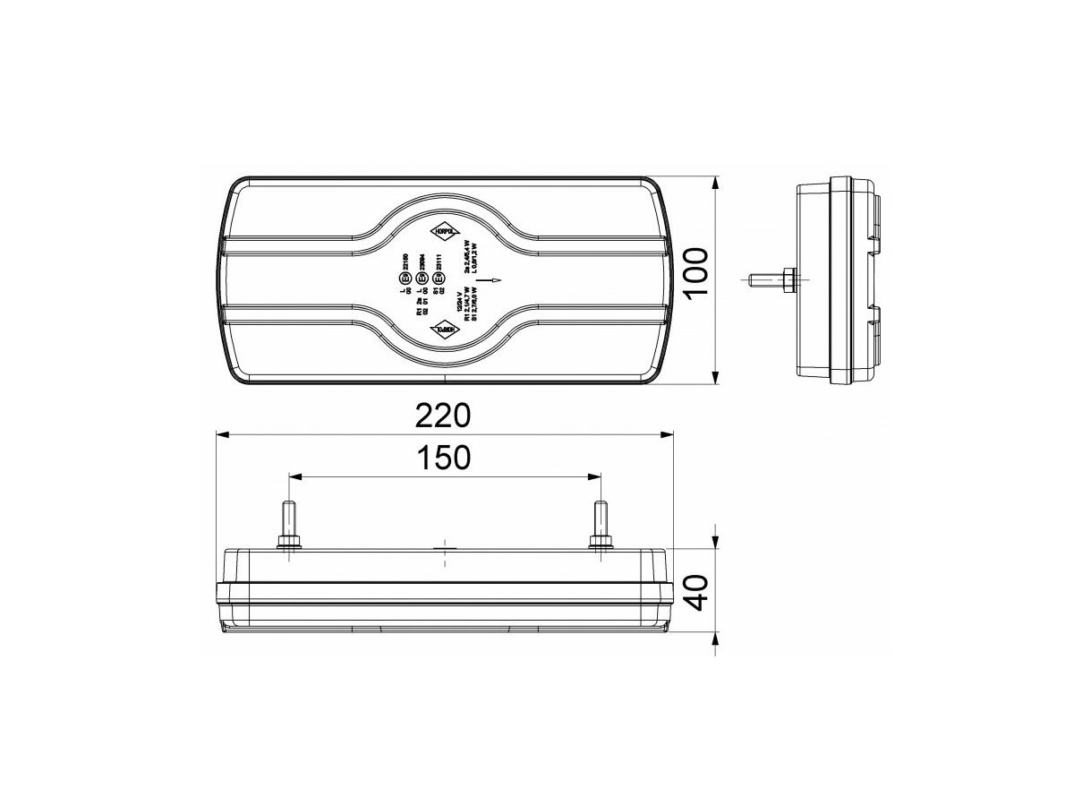 Farolim traseiro multifunções. Luz da matrícula – axila, esquerda