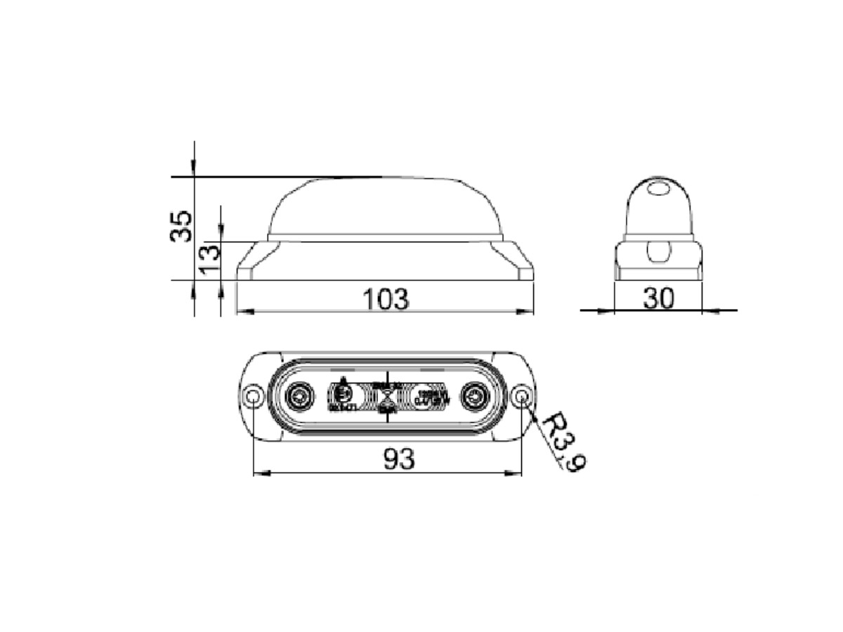 Luz de marcação frontal oval (branca) com almofada de borracha
